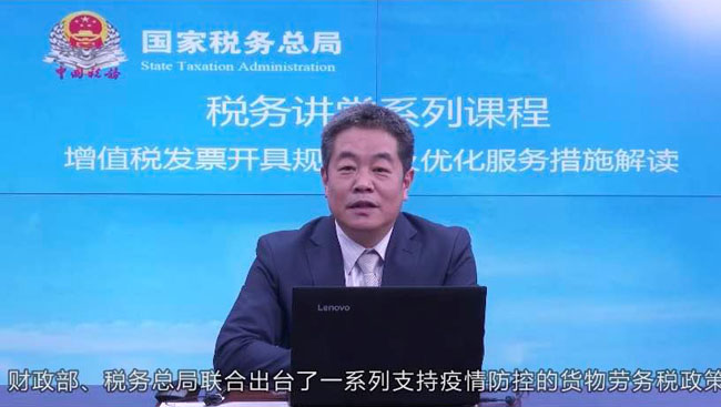 對于這些新政策,納稅人在發(fā)票開具過程中可能會遇到一些疑問。近日,在國家稅務(wù)總局組織播出的“稅務(wù)講堂”上,國家稅務(wù)總局貨物和勞務(wù)稅司副司長吳曉強進行了詳細講解。