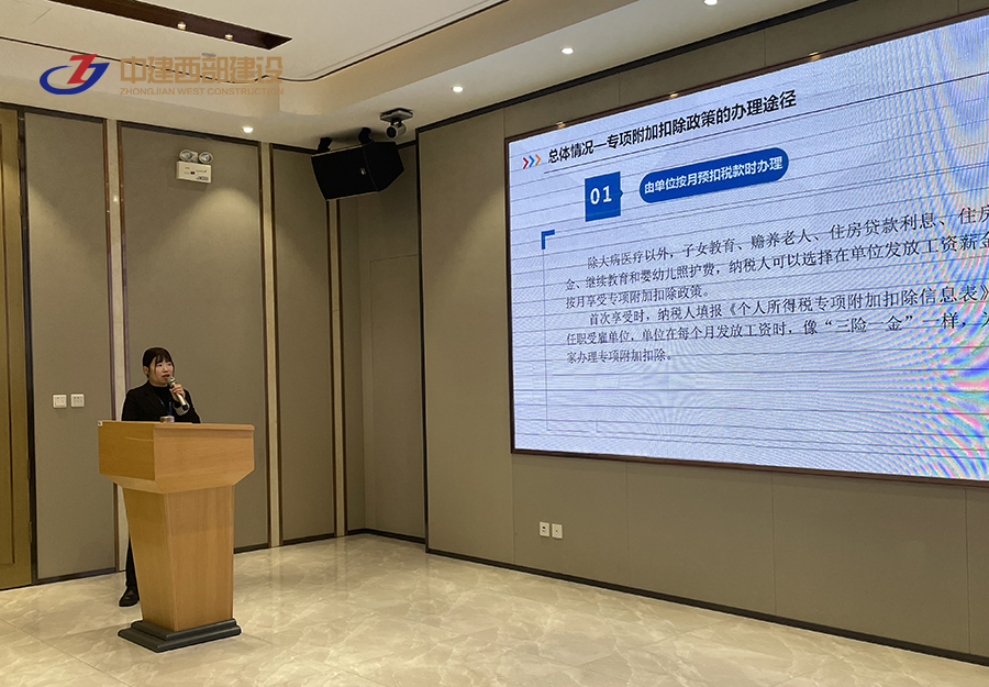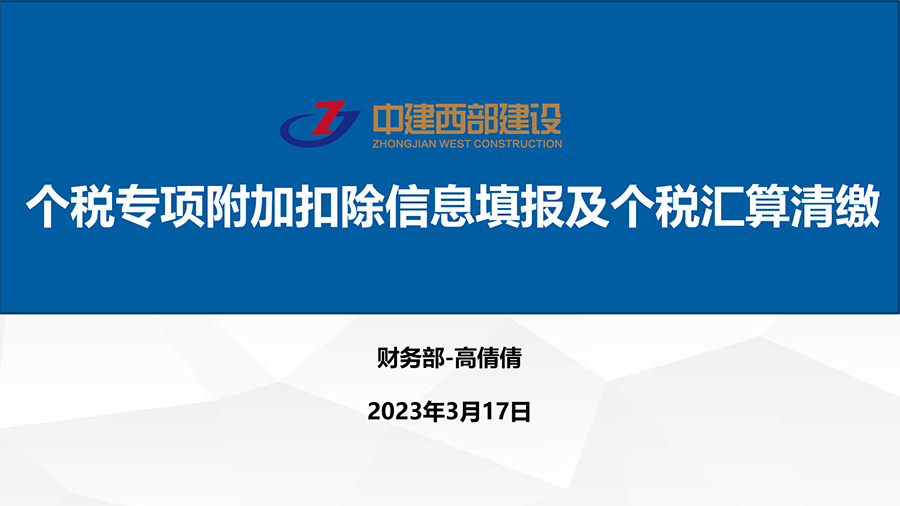 個人應納多少所得稅?哪些專項附加扣除?……為使中建西部建設集團全體員工更好的了解個稅專項附加扣除及匯算清繳政策,讓全體員工充分享受到減稅紅利,按時、準確完成年度個稅匯算清繳工作。2023年3月17日下午,中建西部建設集團開展了《個稅專項附加扣除信息填報及個稅匯算清繳》培訓。此次培訓講座由財務部經理高倩倩講解。