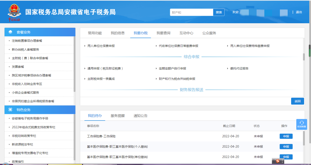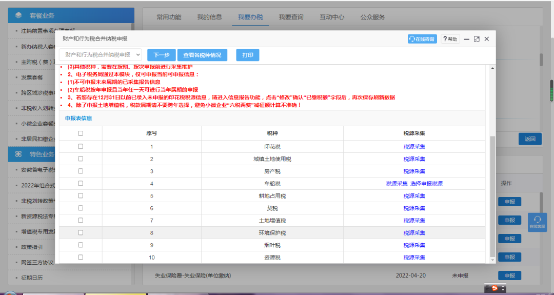 1、登錄電子稅務局-我要辦稅-選擇財產和行為稅合并申報