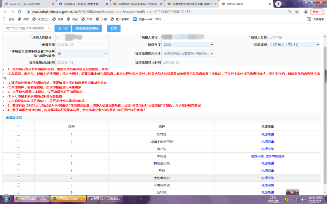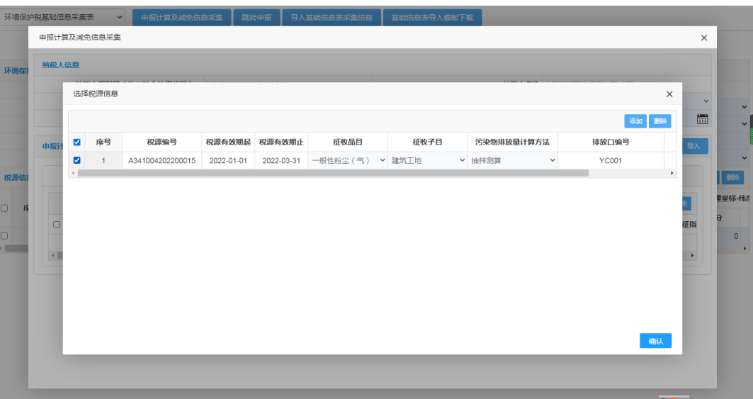 點擊環境保護稅“稅源采集”按鈕,進入信息采集界面。