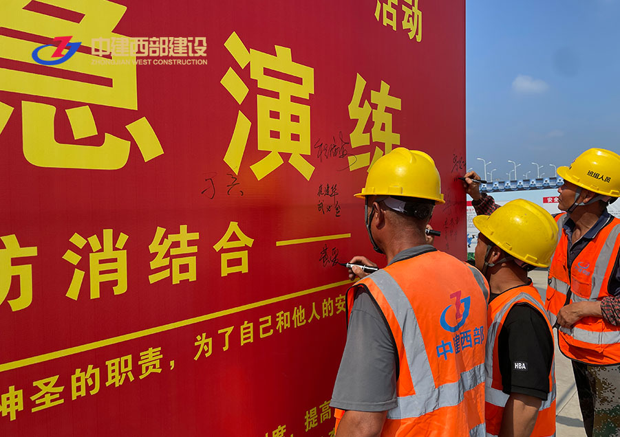 為進一步提高全員自防自救能力,增強消防安全意識。6月27日中建西部在肥東多金城項目部舉行了消防應急演練活動,并帶領全體建筑工人進行安全宣誓。用一句句鏗鏘有力的誓詞,表達對安全生產的信心,在安全展板上鄭重簽下自己的名字,表達對安全生產的決心。
