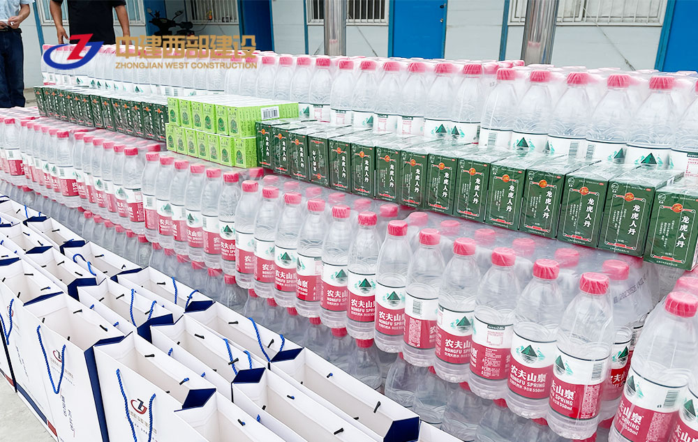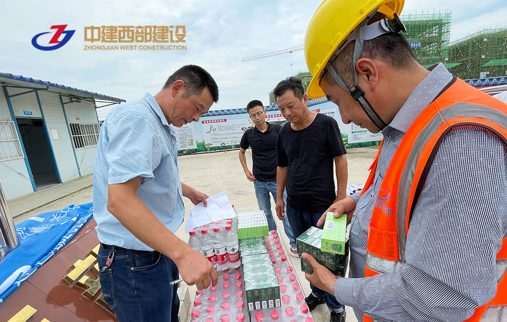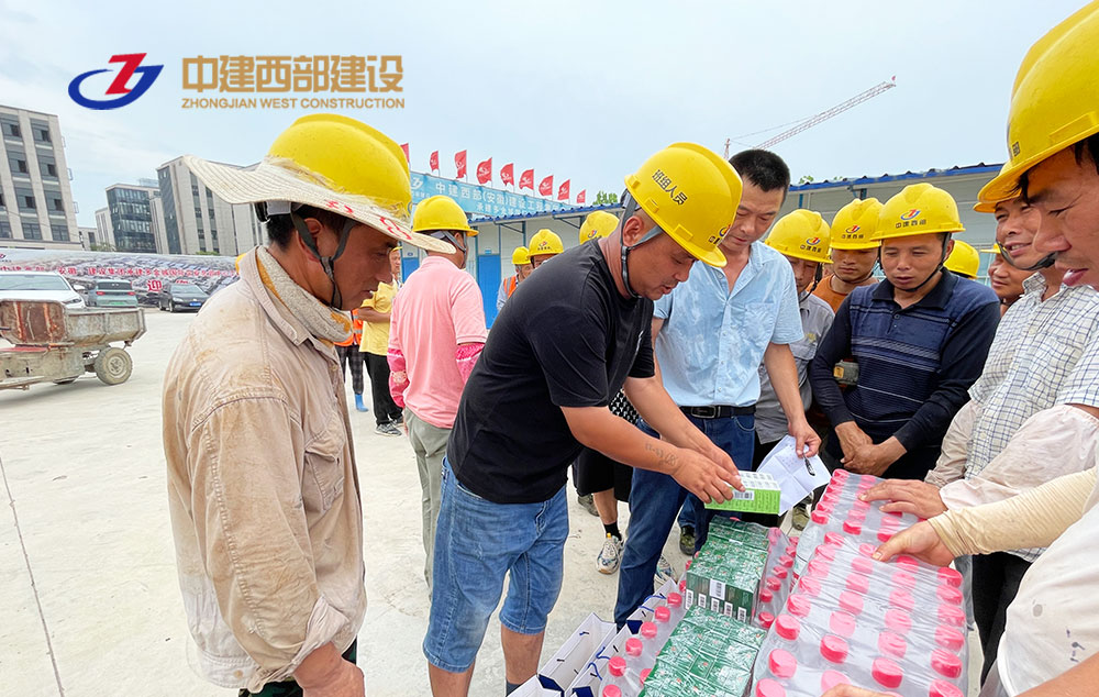 中建西部建設(shè)集團以解決工人日常工作中存在的實際需求出發(fā),要求各在建項目負責人要高度重視夏季高溫施工工作,密切關(guān)注天氣變化,認真落實夏季高溫施工各項防范措施,把夏季高溫施工和安全生產(chǎn)、質(zhì)量控制工作落實到每一個項目、每一個班組、每一個作業(yè)面,嚴防因高溫等惡劣天氣引發(fā)的各類生產(chǎn)安全事故以及質(zhì)量問題。各項目部要按照氣象部門發(fā)布的天氣預報信息,嚴格遵守高溫作業(yè)時間要求,合理安排作息時間。同時組織采購人丹、十滴水、風油精、綠豆、毛巾、礦泉水等防暑藥品和降溫日用品,慰問在項目施工現(xiàn)場的一線建筑工人,同時叮囑大家在高溫工作環(huán)境下保重身體、注意安全。