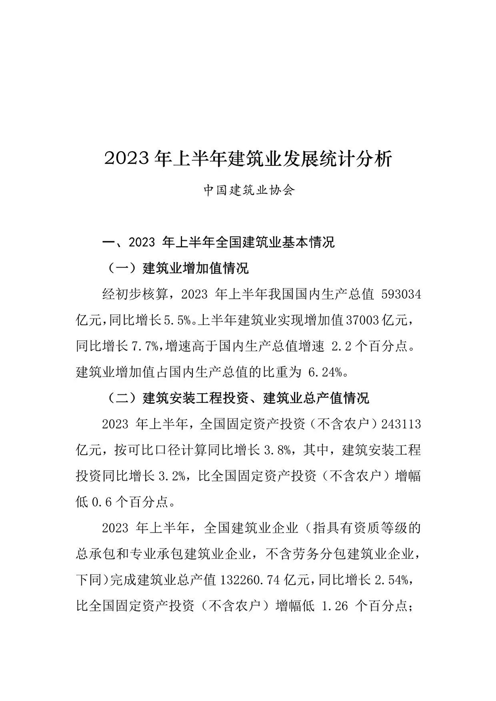 2023年上半年建筑業(yè)發(fā)展統(tǒng)計分析