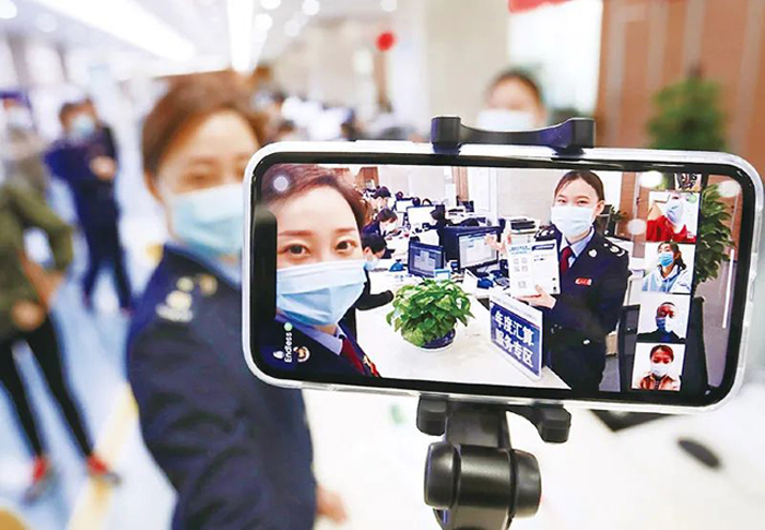 稅務部門持續創新提升稅費政策服務效能,在連續第10年開展的“便民辦稅春風行動”中,推出一系列減環節、減資料、減時間、減成本的創新服務舉措。圖為2023年4月24日,國家稅務總局西安國家民用航天產業基地稅務局干部化身“主播”,向納稅人提供個性化政策宣講解讀及辦稅指引。 國家稅務總局供圖 李鑫、陳顯信/攝