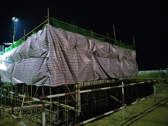 在施工現場各項施工有序進行,為了克服冬季施工環境惡劣對工程質量和安全的影響,項目部采取搭設暖棚、保暖加熱等有效措施,保證施工進度和質量。