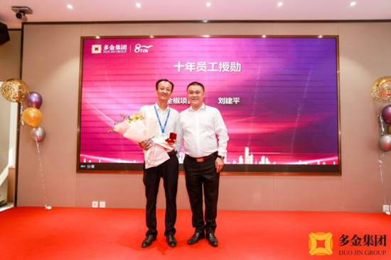 企業(yè)成長發(fā)展離不開一群堅守崗位、默默奮斗的人,他們與多金風雨同舟,感恩同行。在今天這個特別的日子里,多金為五年和十年老員工進行“授勛”。 12名五年司齡和1名10年司齡的老員工分別被授予銀質(zhì)和金質(zhì)司徽,這一枚枚象征榮譽的特殊司徽鐫刻著老員工的奉獻與忠誠,見證所有老員工在多金的成長與發(fā)展、責任與擔當!
