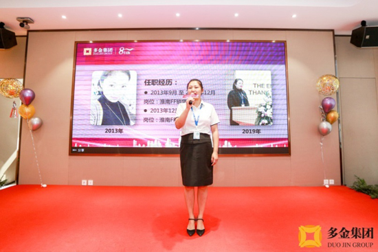 五年員工何培蕾作為授勛員工代表發(fā)言,她用自己和團隊的案例講述了自己如何從職場新人成長為獨當一面的店長、團隊如何頂住壓力提升業(yè)績……,何培蕾只是眾多多金老員工的一個縮影,她的分享向我們解讀了什么是“唯有奮斗,才能成功”。