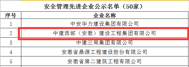 近日,合肥市建筑工程協會傳來喜訊, 2021年度合肥市建筑業優秀企業、單項先進企業、先進個人名單的評選已出爐,中建西部(安徽)建設工程集團有限公司斬獲多項榮譽——2021年度安全管理先進企業和揚塵治理先進個人稱號。