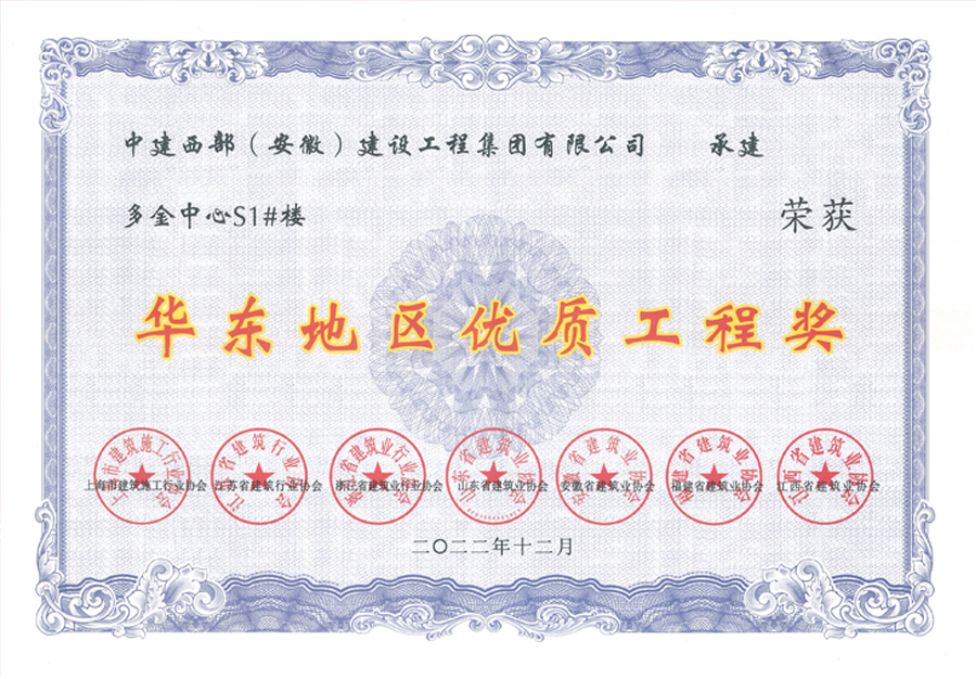2022年度“華東地區(qū)優(yōu)質(zhì)工程獎”評審會已于2022年12月26日在山東濟(jì)南召開,經(jīng)評審委員會投票表決,由中建西部(安徽)建設(shè)工程集團(tuán)有限公司承建的多金中心S1#樓工程獲得2022年度“華東地區(qū)優(yōu)質(zhì)工程獎”。
